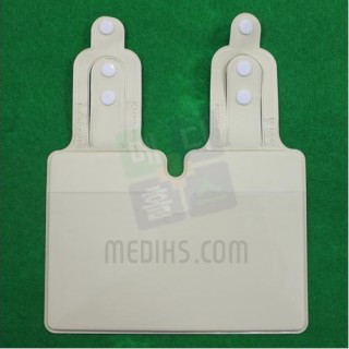 입원환자의 베드에 걸이용 밴드로 거치하여 환자 관련 병명, 신상, 특이사항 등을 기록 명시할 수 있는 기능의 카드 보관 케이스입니다. 2개의 버튼으로 사용되고 있는 베드에 맞추어 사용 가능한 제품입니다.